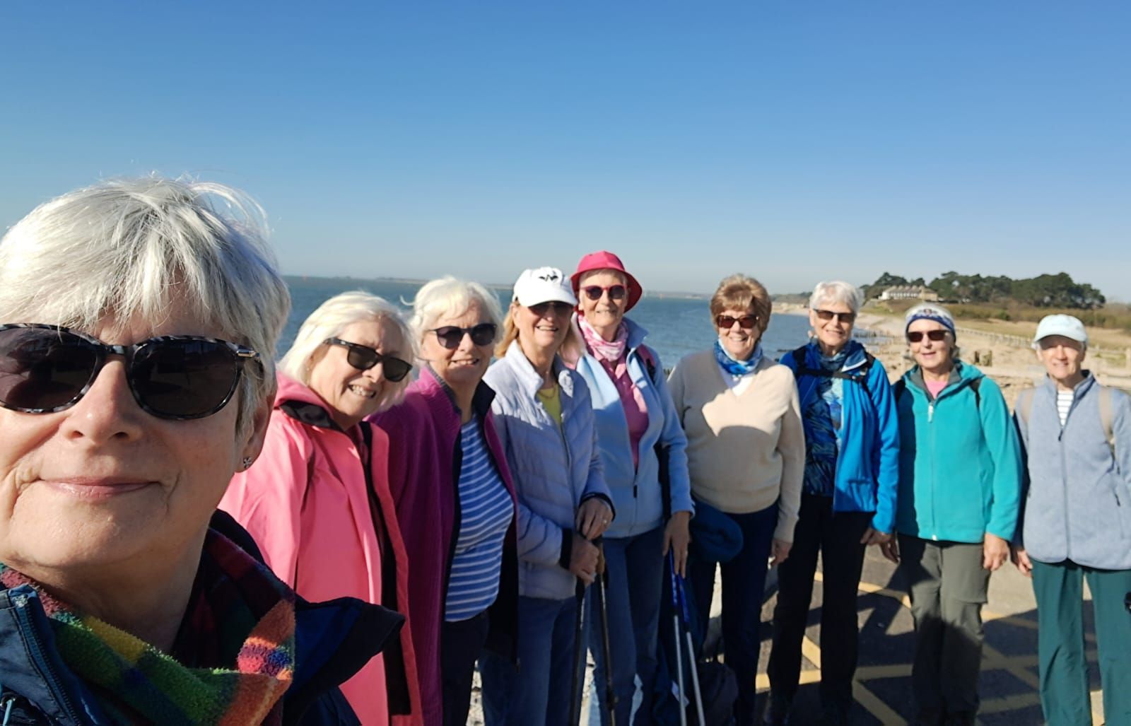 On our first sunny day for a few weeks, a party of nine WI walkers set off from Lepe beach to walk the Lepe Loop. We had walked this popular route in previous years generally in the summer, when there is an abundance of butterflies on part of the route. This year, we planned this walk for the Spring as it coincided with the Oakhaven lunch at Palais des Vaches which several of our members attend.
